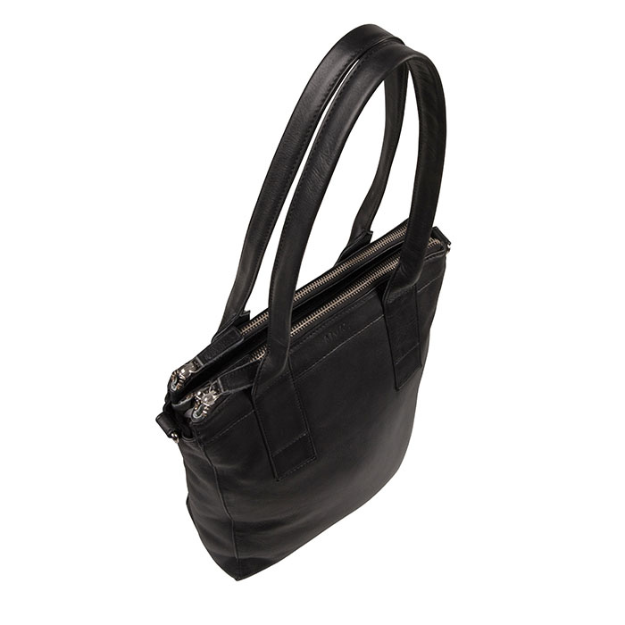 Shopper tas met drie ritsvakken geschikt voor A4 formaat documenten. De tas heeft een lang handvat om over de schouder te dragen en wordt geleverd inclusief verstelbare schouderband van leer én een extra multicolour strap.